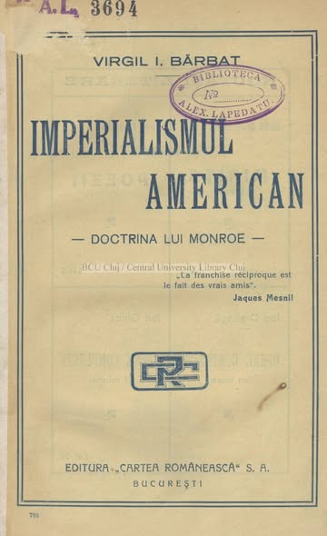 Un imperialism de tip global, ca cel anunțat/născut de doctrina Monroe, nu poate fi combătut decât de un alt imperialism de aceeași magnitudine, care azi este în puterea exclusivă a Chinei.